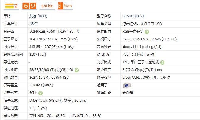 Product name : G150XG03 V3